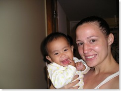 This is a completely awful picture of me. I had just finished working out, washing my face, etc. But it was the best I could do on my own and Chloe's smile is too cute!. It was taken 9/11/07.